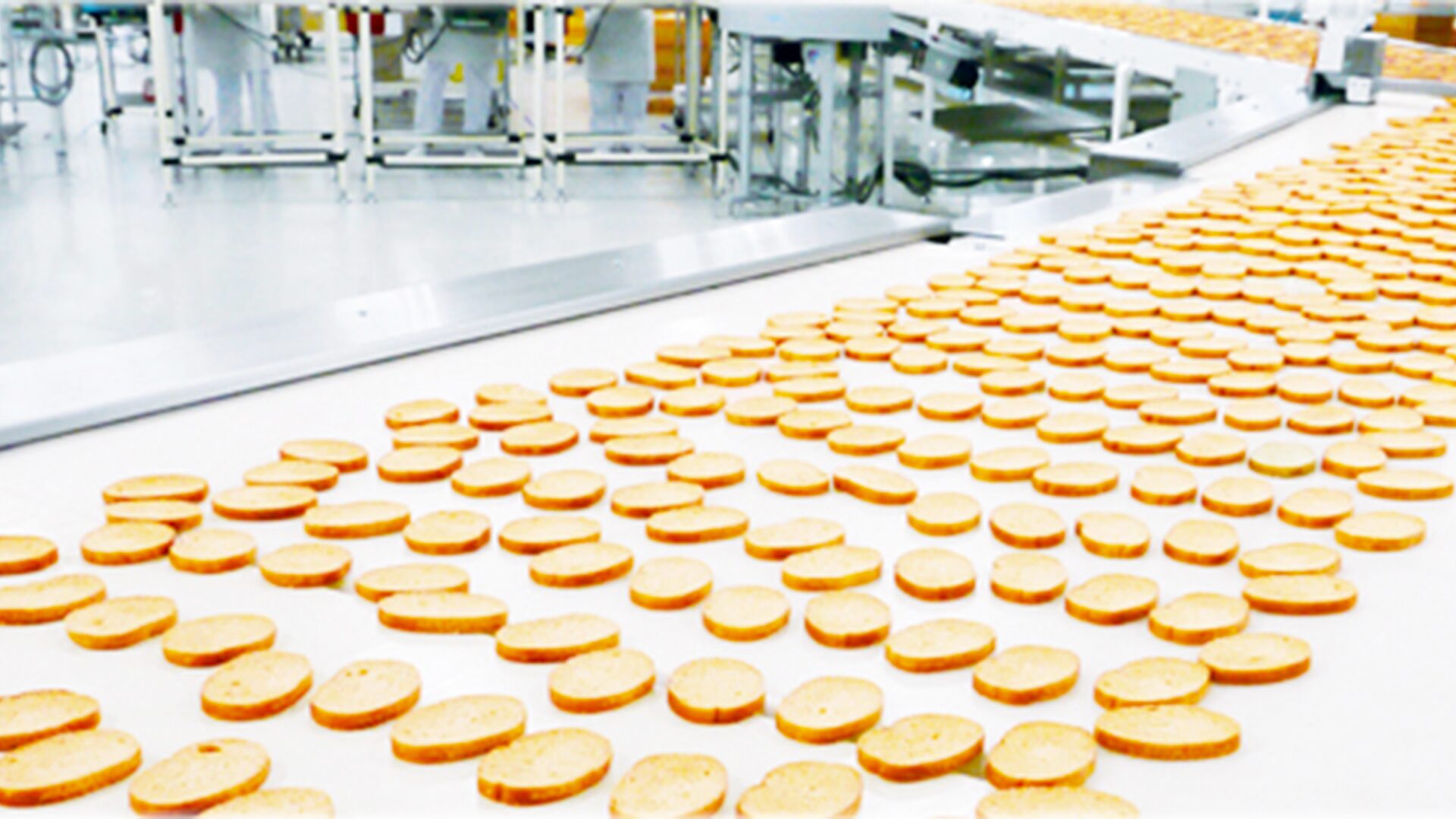 工場では最新の生産ラインでラスクを作る工程を見学できます。