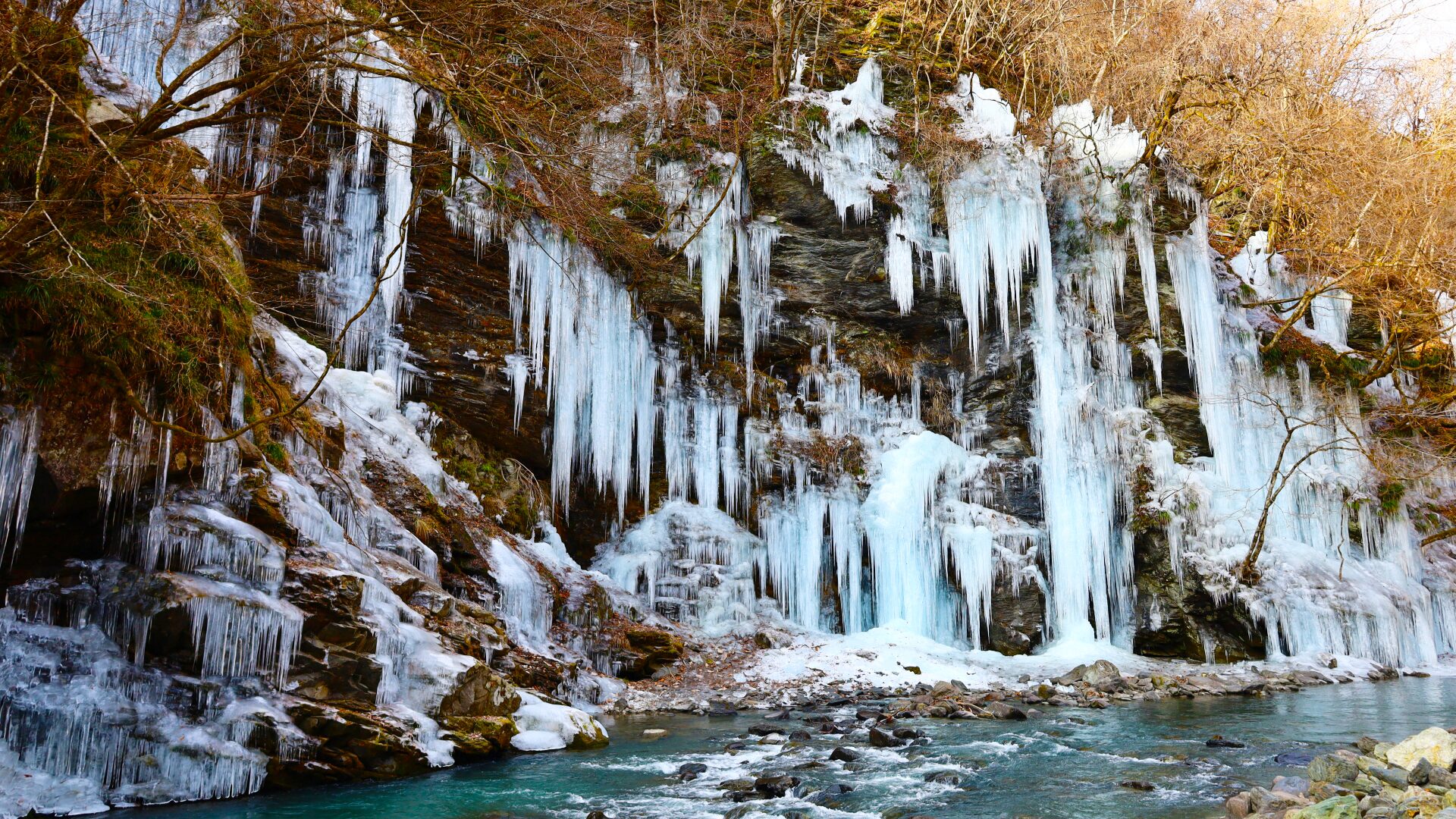 寒さで凍った水が織りなす氷の造形は昼間の光に透けて、透明感あふれる美しさを見せてくれます!冬ならではの自然の神秘を間近で感じられる、訪れる人を魅了する名所です♪