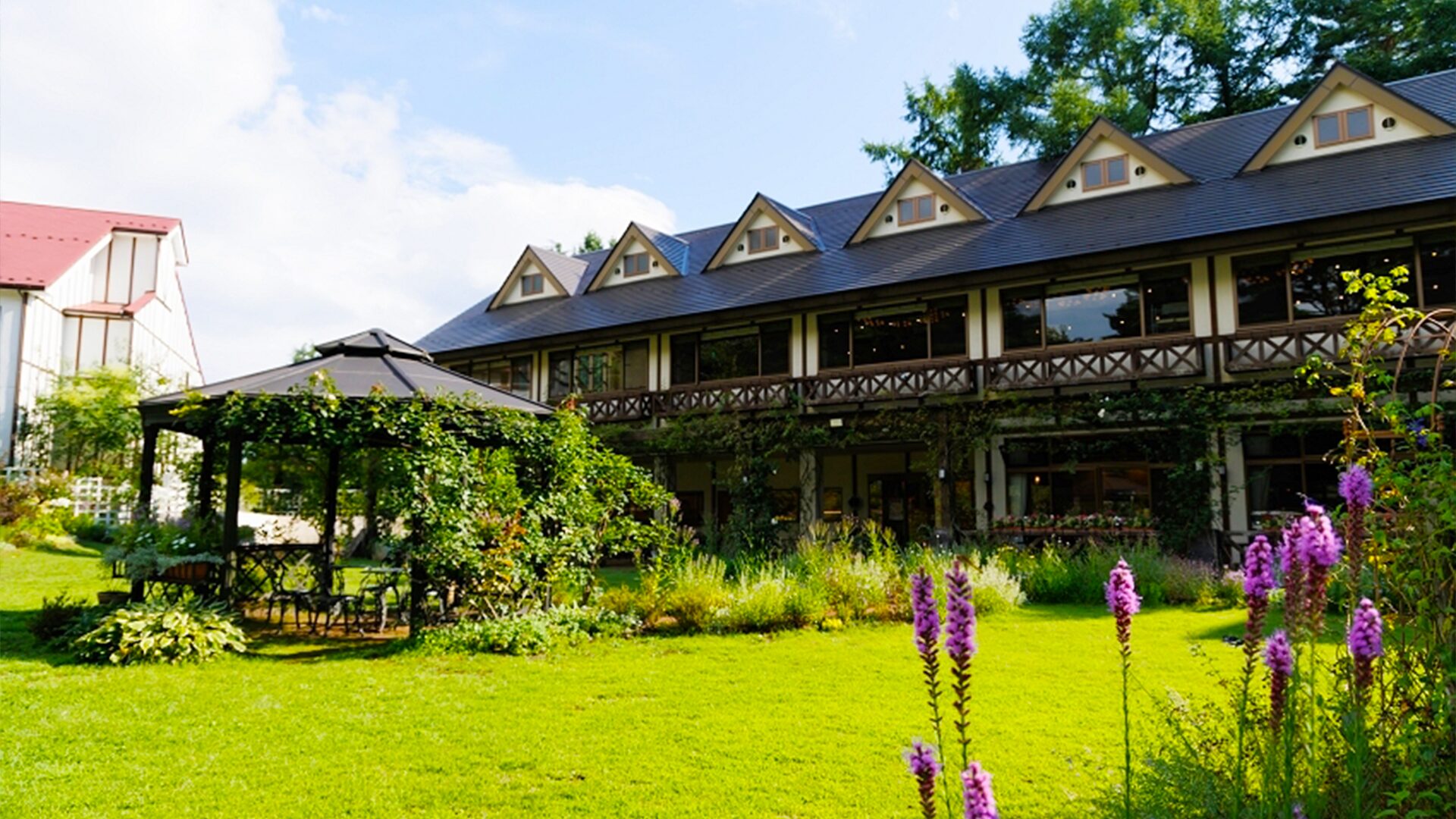 園内には、ハーブや花の観賞スポット以外にショップやカフェなどもあり、園内のハーブは全て触ることができるため、ハーブの香りを存分にお楽しみいただけます。花畑では一年を通して季節の花々をお楽しみください♪