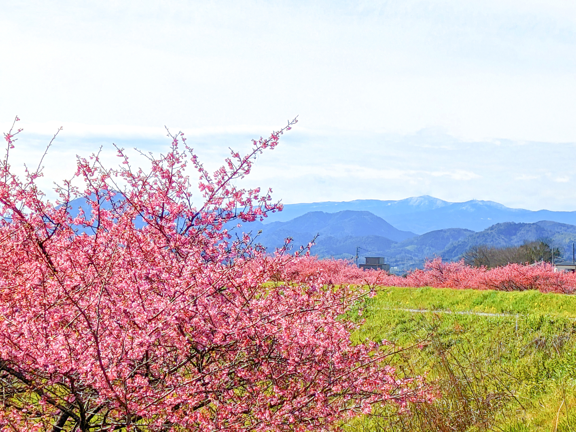 早咲きの桜であるため、例年の見頃はソメイヨシノより早い 2月中旬〜3月初旬ごろとされています。春の訪れをいち早く感じられるのが特徴です。桜並木の背後には箱根連山や富士山を望める場所もあり、淡い桜色と雄大な山景が調和する、静岡らしい“春の風景美”を楽しめる貴重なスポットです♪