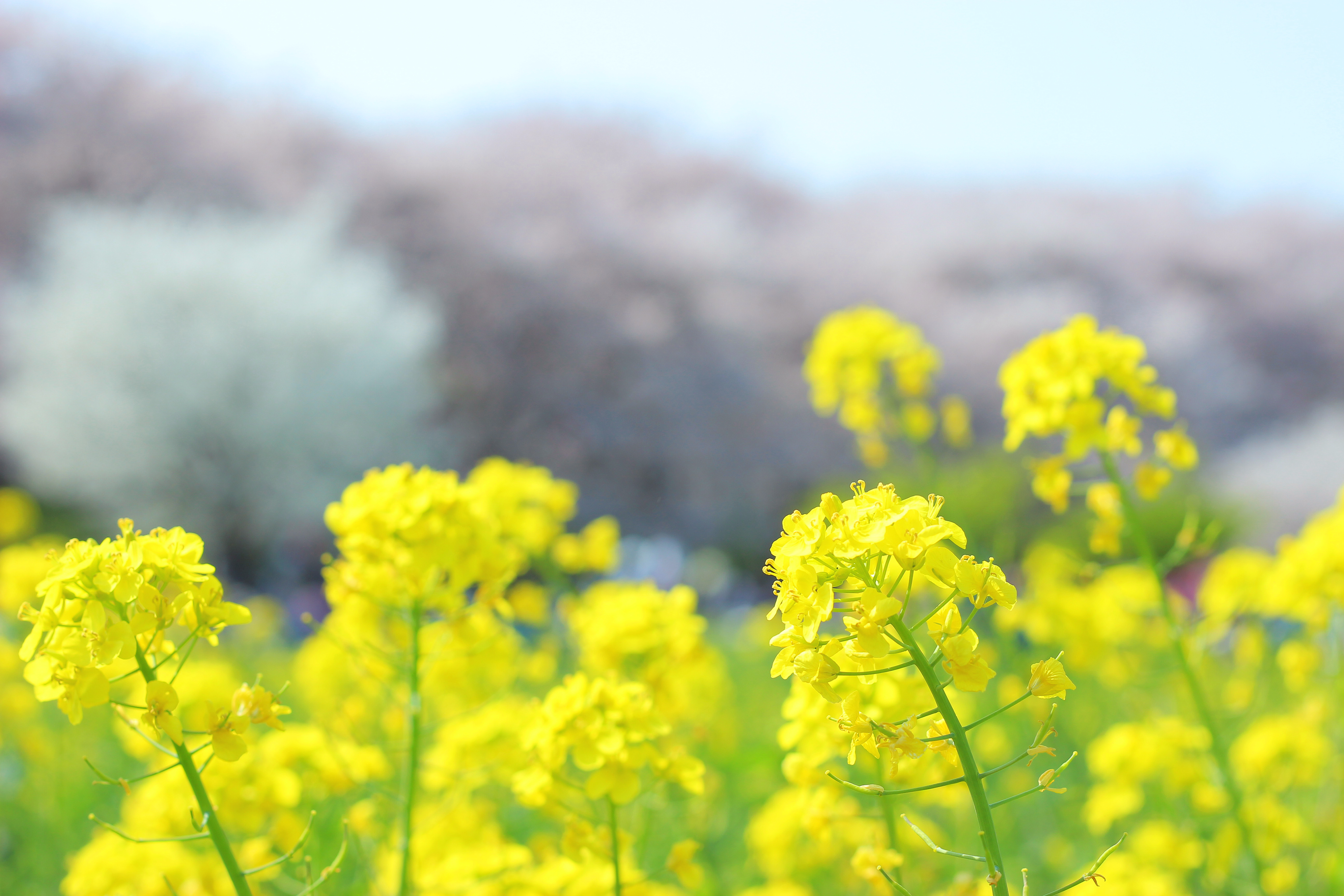 堤の下に広がる菜の花畑との鮮やかなコントラストは圧巻で、桜のやわらかな薄紅色と菜の花の明るい黄色が織りなす景観は、まさに春の絶景。関東屈指の花の名所として、多くの来訪者を魅了しています。