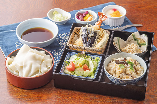 幅が広く、厚みは1ミリ程度と薄く、つるんとした喉ごしも特徴のひとつ!ここでは「ひもかわうどん」をお召し上がりください♪