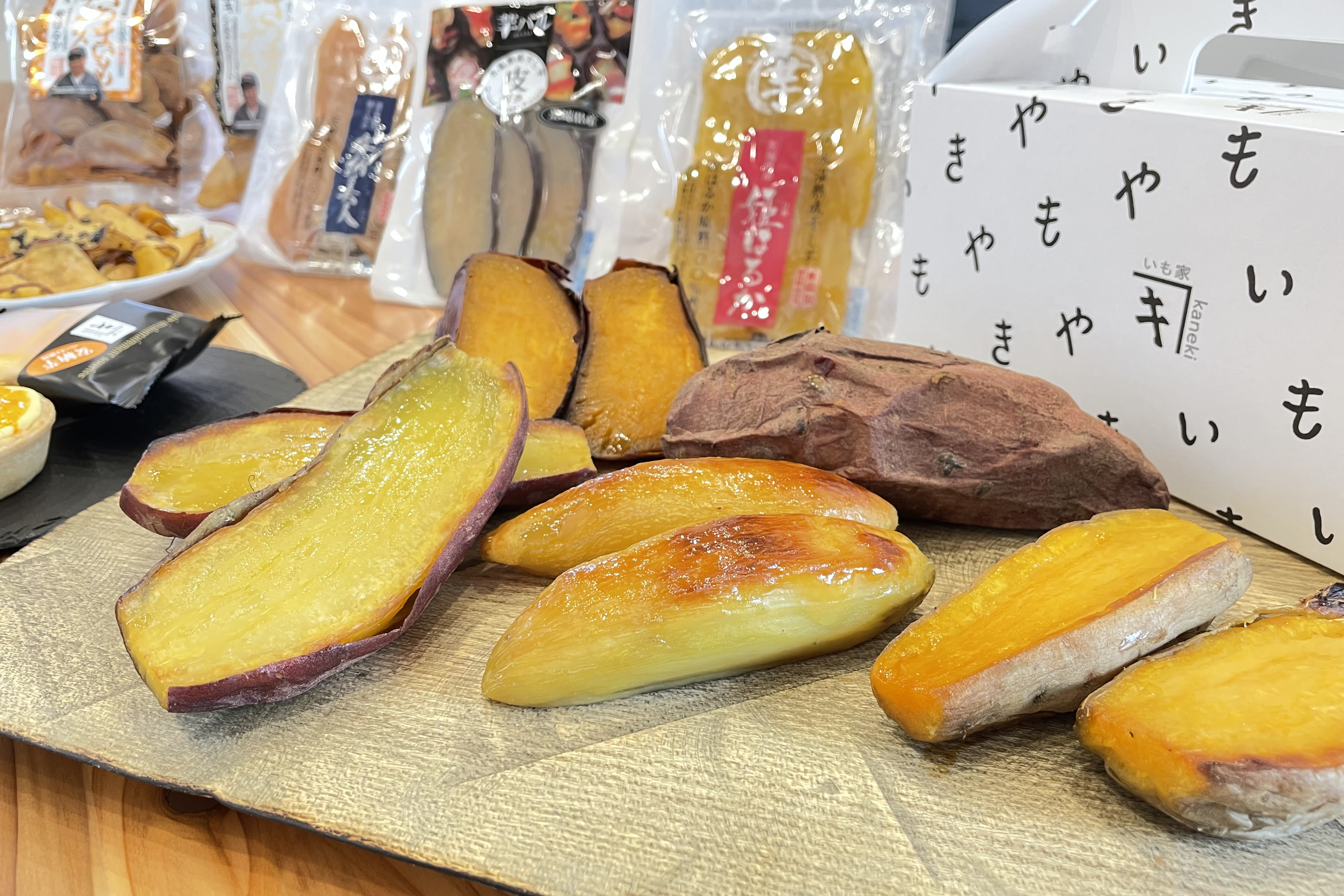 いも家kanekiは栃木県佐野市のさつまいも専門店で、こだわりの焼き芋『まるでスイートポテト焼き芋』、『おいものまんま』、氷温熟成干し芋を中心として無添加、無着色の商品をプロデュースしてきました。その他、『安納芋フロマージュタルト』、『さつま芋チップス』、大学芋、さつま芋の皮を使った『さつま芋ワッフル』、など体に優しいスイーツを取り揃えています。