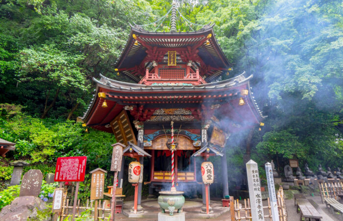 約1,300年の歴史をもつ由緒ある寺院で、約1,300年の歴史をもつ古刹で、坂東三十三観音霊場の第16番札所として多くの参拝者が訪れます。特に人気なのが、回転式の六角堂。水澤観音を象徴する建造物で、回転式になっている内部をゆっくりと回すことで、六道輪廻からの解脱を願えるとされています。また、本堂に祀られた千手観音菩薩は慈悲深い表情で参拝者を迎え、厄除けや安産、家内安全のご利益があると伝えられています。観音様へのお参りはもちろん、自然散策にも最適です。歴史・自然・グルメが揃った水澤観音で、心安らぐひとときをお過ごしください。