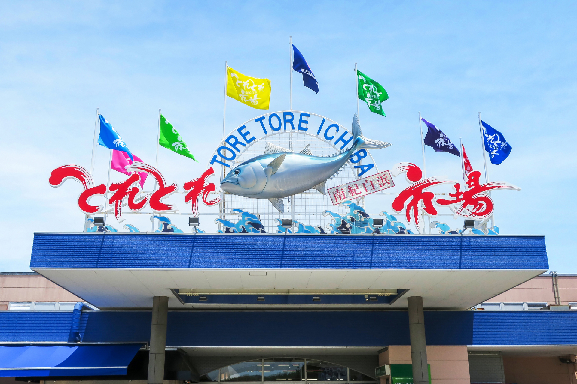 市場内には、地元で水揚げされたばかりの新鮮な魚介類や旬の野菜、名産品がずらりと並び、見て回るだけでもワクワクする空間が広がっています。ランチバイキングでは、多彩な海鮮料理や季節の食材を使ったメニューが魅力です。新鮮な地野菜や海の幸を使った煮魚・焼き魚・お造り・お寿司をはじめ、パスタやグラタン、ハンバーグなどの洋風メニュー、デザートまで種類豊富な料理を好きなだけ楽しめます。さらに、地元の特産品をその場で味わえるため、観光の合間に立ち寄るだけでも贅沢なひとときを過ごせます。お土産コーナーには、新鮮な魚介加工品や地元スイーツ、工芸品などが揃い、訪れる人々を飽きさせません。観光、ショッピング、そしてグルメ体験が一度に楽しめる「とれとれ市場」は、白浜観光の定番スポットです♪
