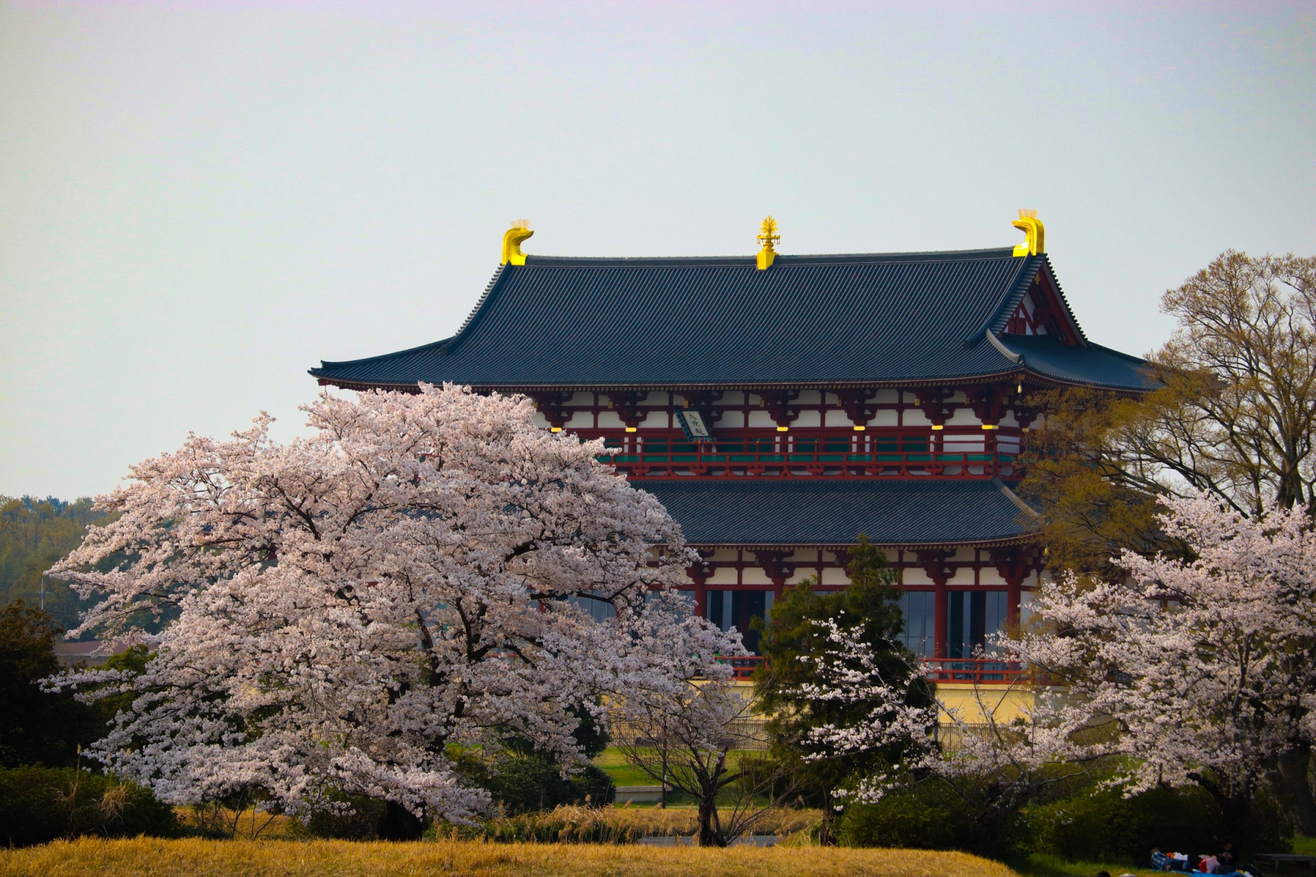 奈良時代の都「平城京」の中心地だった歴史的スポットで、広大な敷地に当時の宮殿跡や復元建物が点在しています。まずスケールの大きさに驚かされること間違いなし!春になると平城宮跡は、歴史の舞台を彩る桜の名所に変わります。広大な敷地に咲き誇るソメイヨシノやシダレザクラが、古代の宮跡と一体となって美しい景色を作り出します。広場に広がる桜並木や復元建物を背景に、写真撮影やのんびり散策が楽しめます。歩きながら、天平時代の都の雰囲気を感じつつ、春ならではの色鮮やかな景色を満喫できるのが魅力です。