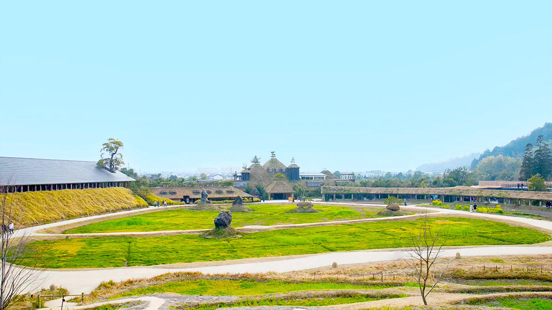 滋賀県近江八幡市の田園風景の中に広がる、自然とお菓子が融合した話題のスポット。和菓子の老舗 たねや と、洋菓子ブランド クラブハリエ が手がけるフラッグシップ施設です。まるで物語の世界に迷い込んだかのような草屋根の建物が印象的で広大な敷地内には、和菓子・洋菓子それぞれのショップやカフェ、工房が点在。ガラス越しに職人がバームクーヘンを焼き上げる様子を見学できるなど、ものづくりの臨場感を体感できます。特に人気なのが、焼きたてのバームクーヘン。ふんわりとした食感とやさしい甘さはここでしか味わえない特別な一品で、併設のカフェでは限定スイーツや季節限定メニューも楽しめます