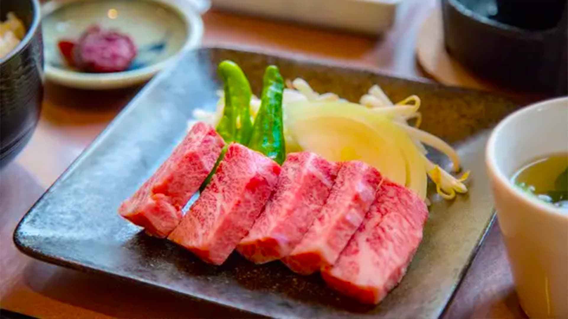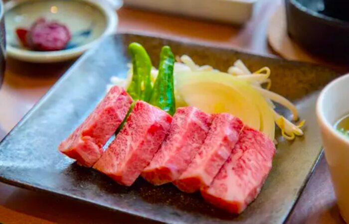 名物は、滋賀の誇るブランド牛「近江牛」を使った料理の数々。すき焼きやしゃぶしゃぶ、牛丼、定食など、上質な近江牛の旨みを存分に味わえるメニューが揃っています。やわらかくきめ細やかな肉質と、とろけるような脂の甘みが特徴で、素材の良さを生かした上品な味付けが魅力です。