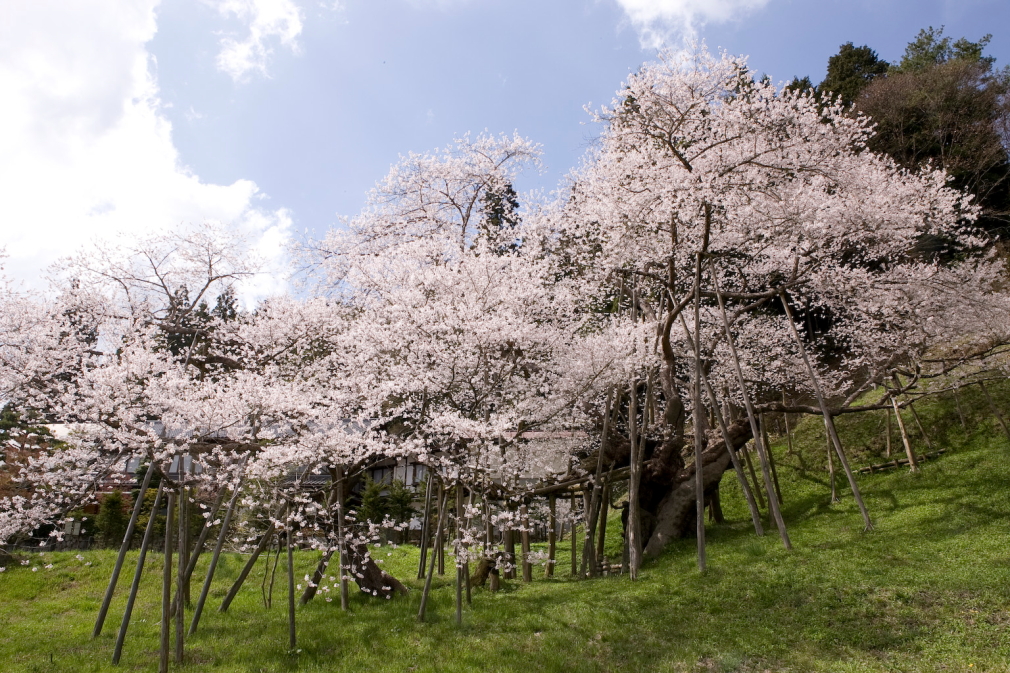 エドヒガンザクラの一種で、春になると幹や枝にびっしりと淡紅色の花を咲かせ、その迫力と優雅さが同時に味わえる桜として知られています。