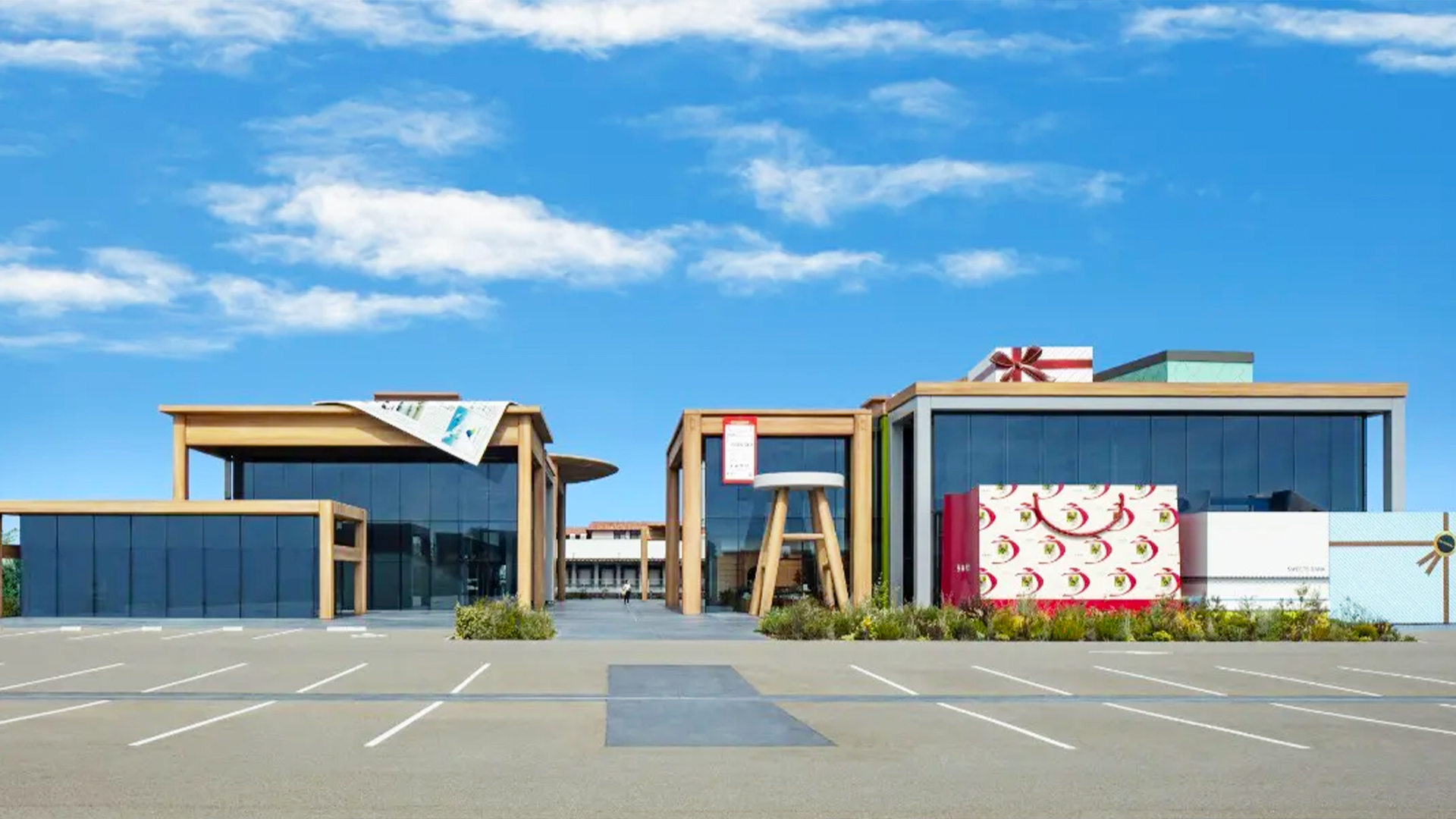 設計を手がけたのは、世界的建築家 隈研吾。建物の中には巨大なテーブルや椅子のオブジェが配置され、来場者が“小さくなったような感覚”を楽しめる空間演出がなされています。